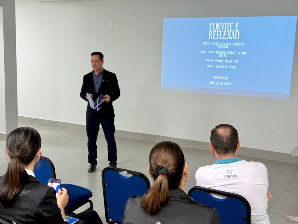 A reunião também contou com uma apresentação sobre a Reforma Tributária, ministrada pelo Dr. Paulo César Gnoatto, que detalhou os principais pontos das mudanças propostas e os impactos para as empresas. O especialista abordou os ajustes esperados na legislação e as adaptações necessárias para que os empreendedores se mantenham em conformidade com o novo modelo tributário.