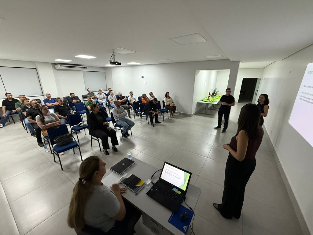 Na sequência, as executivas Vanessa Ribeira e Kerla Pagnoncelli apresentaram um balanço das ações e reuniões realizadas pelo COEPS – Conselho dos Executivos das Associações Comerciais. Elas destacaram o fortalecimento da integração entre os gestores, os avanços obtidos ao longo do ano e a importância da troca de experiências para aprimorar a atuação das entidades.