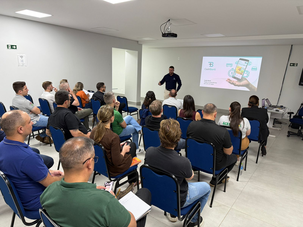 Um dos destaques da programação foi a participação de Rafael Racioppe, gerente-geral da Cash Berti, que apresentou a nova plataforma digital de pagamentos da empresa. A solução foi desenvolvida para trazer mais agilidade, segurança e modernização às transações realizadas pelos comerciantes da região.