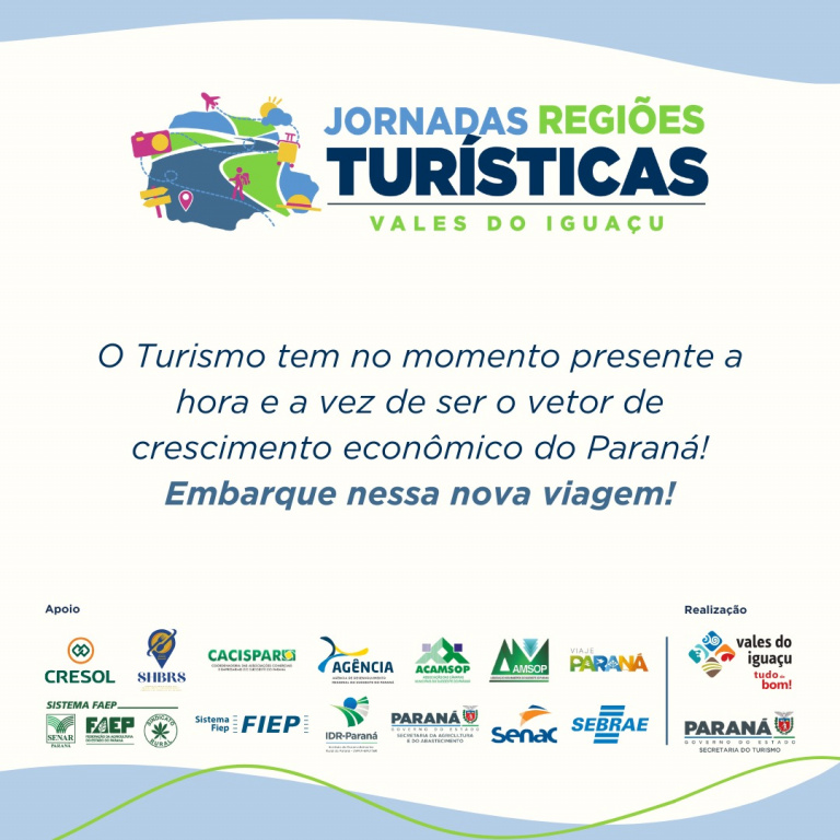 A Secretaria de Estado do Turismo, em parceria com a Agência de Desenvolvimento do Sudoeste do Paraná e Cacispar convidam